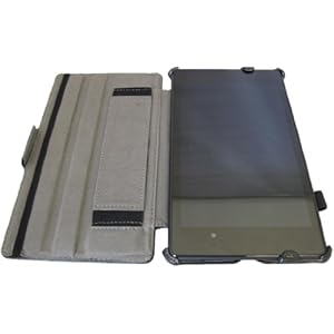 下の図の左蓋のバンドが見えると思うが、ここに手を差してNexus7自体を支える事ができる。
